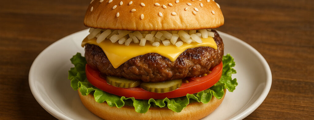 当店自家製のバンズとハンバーグを使った食べ応えバツグンのハンバーガーです。